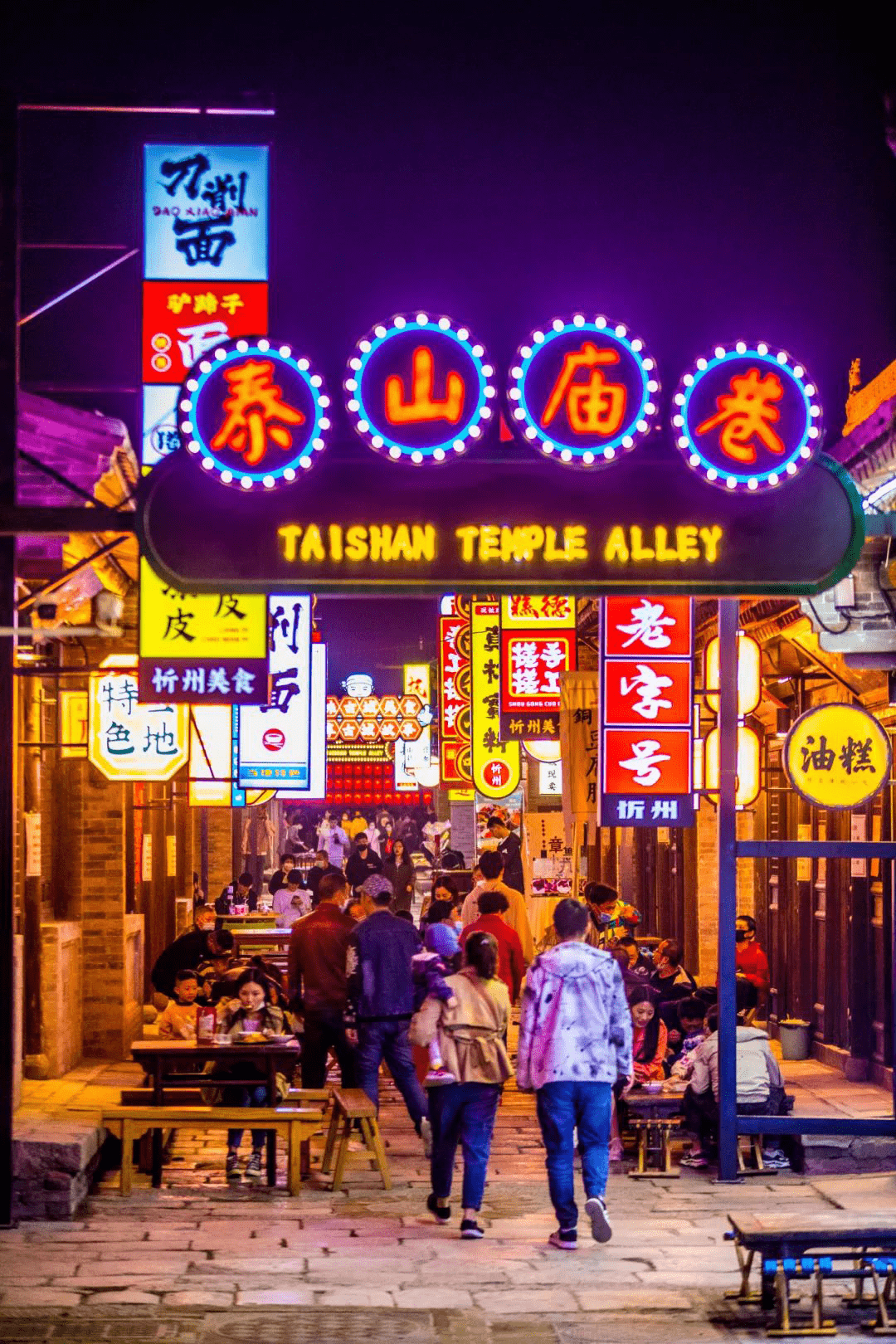 泰山庙巷是忻州古城的美食集结地,整条巷子两侧都是小吃店,沿街穿行吃尽美食把酒言欢
